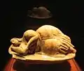 У храмі було знайдено велику кількість предметів, у тому числі вишукано оздоблені глиняні посудини, кам’яні та глиняні намистини, ґудзики від мушель, амулети, наконечники сокири та різьблені фігурки із зображенням людей і тварин. [9][8] Найвизначнішим відкриттям була глиняна фігура Богиня-мати. Фігури варіюються від абстрактних до реалістичних за стилем, з основними темами, які, як вважають, пов’язані з вшануванням мертвих і духовним перетворенням. [3] Також представлені складні художні прийоми, як у випадку однієї великої гончарної миски, в якій використовуються як натуралістичні, так і стилізовані теми, причому на одній стороні реалістично зображені велика рогата худоба, свині та кози, а на іншій стороні зображені тварини, приховані у складних геометричних візерунках. [3]