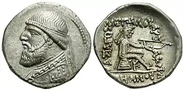 Срібна драхма парф'янського царя Мітрідата II, викарбувана в Екбатанах