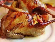 Як найбільший делікатес цінується голова птаха, якою часто начиняють тушку.