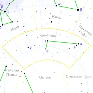 | Найяскравіша зоря | Альфа Хамелеона 4,05m |