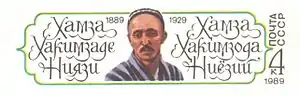 ![]() Портрет Хамзи Хакімзаде Ніязі на радянській поштовій марці, приуроченій до століття від дня народження поета (1989) | ||||