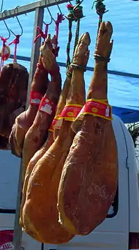 - Серрано — відмінна ознака: біла свиня, хамон має білу ратицю.