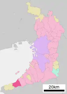 - Хіґашіде М. Історія міст префектури Осака. Адміністративний поділ Японії. (японською). Архів оригіналу за 25 червня 2013. Процитовано 20 вересня 2012.