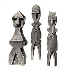 Персонажі нижчої міфології: пупі (пупих) — дух (і його зображення), менкв — велетень-людожер, утчі (унху) — міфічний лісовий мешканець, міс (міш) — добрий лісовий дух.