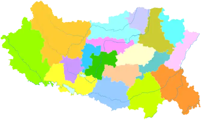 Міський округ поділяється на 6 районів, 1 міський повіт й 11 повітів: