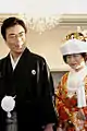 Японські молодята. Наречений вдягнутий у чорне хаорі