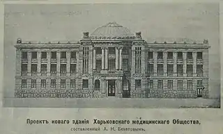 У 1913 році медична бібліотека розташувалася в будівлі медичного товариства, яке було побудовано О. М. Бекетовим за громадські кошти, на вулиці Німецькій (тепер вул. Пушкінська, 14). Для бібліотеки архітектором було передбачено приміщення з книгосховищем та читальним залом, дотепер в цьому сховищі знаходиться частина книжкового фонду Харківської наукової медичної бібліотеки.[2]