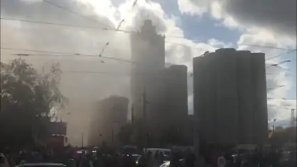 ![]() Харківський елеватор, 18 жовтня 2020 року. Після вибуху адміністративної будівлі. |