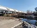 Було збудовано дві опори майбутнього автомобільного мосту поруч з метромостом, після чого будівництво припинилося. Тепер завершити будування не можливо через величезний ринок Барабашова, що виник пізніше.