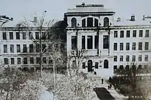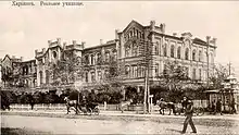 Ця будівля є історичною архітектурною пам'яткою міста (охор. № 177), загальна площа якої становить 8661,9 м². У цьому корпусі зараз розміщується ректорат і усі адміністративно-господарські структурні підрозділи (відділ кадрів, бухгалтерія, господарська частина, навчально-виховний відділ, актова і читальна зали, наукова частина, аспірантура), навчально-науковий інститут бізнесу і менеджменту з підпорядкованими йому кафедрами, Німецький Центр (Deutsches Zentrum), як культурно-освітянська установа німецької діаспори у Харківській області.