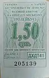 Разовий квиток на проїзд у міському тролейбусі. Вартість 1,50 гривень. КП «Тролейбусне депо №2» | |