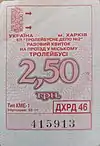 Разовий квиток на проїзд у міському тролейбусі. Вартість 2,50 гривень. КП «Тролейбусне депо №2» | |