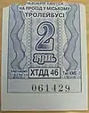 Разовий квиток на проїзд у міському тролейбусі. Вартість 2 гривні. КП «Тродейбусне депо №2» | |