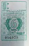 Разовий квиток на проїзд у міському тролейбусі. Вартість 6 гривень. КП «Тролейбусне депо №2» | 2019 |