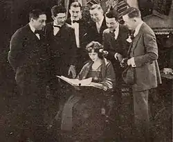Аніта Стюарт сиділа та читає сценарій, стоять: продюсер Луїс Б. Майєр, режисер Бертрам Брекен, актори Ворд Крейн та Чарльз Річман