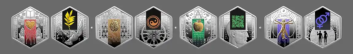 - 2018 «Краща монета року України», колекційний набір монет «До 100-річчя Національної академії наук України»: «Ера миру», «Ера змін», «Ера технологій», «Людина, час, простір»