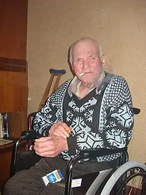 - Сумівці подарували інвалідний візок ветерану УПА. Київська міська організація СУМ в Україні (архів). 2012. Архів оригіналу за 20 грудня 2015. Процитовано 20 грудня 2015.