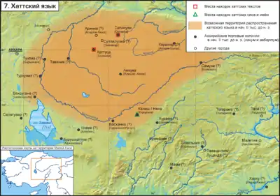 Приблизне поширення хаттської мови на поч. II тис. до н. е.