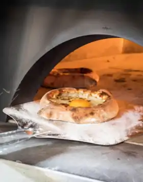 - аджарське хачапурі — також називається ачарулі або аджарулі, і вирізняється тим, що випікається видовженої форми, а посередині прикрашене залитим яйцем;