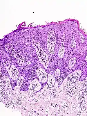 ![]() Гістологічна картина хвороби Боуена Гістологічна картина хвороби Боуена | |