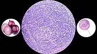 ![]() Мікрофотографія у великій роздільності матеріалу біопсії лімфатичної тканини у хворого на хворобу Каслмена | |