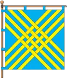 Квадратне синє полотнище, на якому вісім жовтих переплетених діагональних смуг.