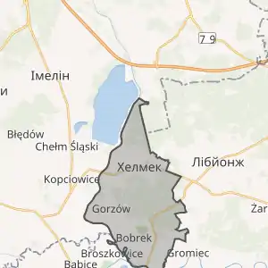 Гміна Хелмек межує з такими гмінами: Берунь, Імелін, Лібйонж, Освенцим, Холм-Шльонський.