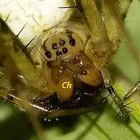 Двочленикові хеліцери у формі підклешень, ймовірно, являють собою найбільш спеціалізований варіант будови цих придатків. Згідно з гіпотезою Шульца (Shultz 1990), їх слід розглядати як синапоморфію групи Tetrapulmonata (чотирьохлегеневі), що об'єднує павуків та близькі до них ряди Amblypygi, Schizomida та Thelyphonida. Відомо два варіанти їхньої будови — ортогнатний та лабідогнатний. За ортогнатного рухомі кігті хеліцер спрямовані вперед і вниз паралельно один одному, за лабідогнатного кігті розташовані з боків до площини двобічної симетрії тіла та спрямовані назустріч один одному. Лабідогнатні хеліцери характерні тільки для аранеоморфних павуків.