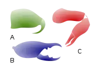 Тричленикові клешнеподібні хеліцери, ймовірно, являють собою вихідний (плезіоморфний) для хеліцерових варіант будови і характерні для мечехвостів, ракоскорпіонів, скорпіонів, кліщів та сінокосців.
