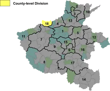 | 18 | Цзіюань | 济源市 | Jìyuán Shì | |