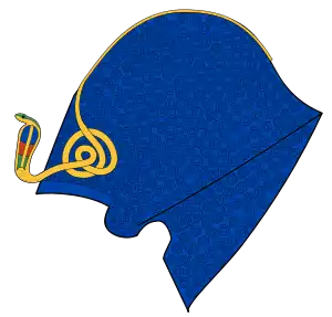 До наших днів не збереглося жодного примірника блакитної корони, тому невідомо як і з чого її виготовляли. Є припущення, що їх робили з тканини[3] або забарвленої в синій колір шкіри, яку зовні покривали дрібними жовтими дисками, що нагадують сонце. Як і у багатьох інших корон, у передній частині кріпився урей.