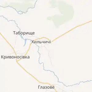 Село Хильчичі знаходиться на правому березі річки Бичиха, яка через 2 км впадає в річку Свига, нижче за течією на відстані 0,5 км розташоване село Таборище, на протилежному березі — село Кривоносівка.