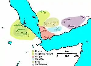 З початку 3 ст. розпочалося нове піднесення Хим'яру. У другій половині цього століття до нього остаточно були приєднані Сабейське царство і Катабан. На початку 4 ст. був завойований Хадрамаут. Таким чином весь Ємен був об'єднаний під хим'ярською владою. У другій половині 4 ст. хим'ярські царі почали приймати юдаїзм, напевно під впливом місцевих євреїв. Крім того, південні аравійці мали конфлікт за контроль над морською торгівлею з Аксумом, який прийняв християнство. Збільшення опадів спричинило у 450 р. перший прорив Марібської греблі, яка забезпечувала сільське господарство країни. Але могутність хим'ярських царів дала можливість відновити іригаційні споруди. Також тривала боротьба місцевих християн (за підтримки Аксуму і Візантії) з місцевими юдаїстами. 517 р. до влади прийшов юдаїст Зу Навас, який вчинив террор проти християн. В результаті в Ємен вторглись війська Аксуму і посадили свого ставленика на престіл.