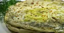 - Тонко розкатані коржі смажаться з двох сторін на розпеченій сковороді і змащуються вершковим маслом.
