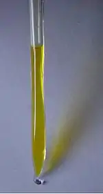 Під тиском близько 6 атмосфер хлор уже при звичайній температурі скраплюється у жовту важку рідину, яка під нормальним тиском кипить при −34°С, а при −102,4°С замерзає в жовтувату кристалічну масу. Скраплений хлор зберігають і транспортують у стальних балонах.