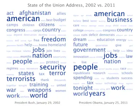 Хмара тексту або хмара слів — це візуалізація частоти слів у тексті у вигляді зваженого списку. Останнім часом ця техніка використовується для візуалізації тематичного контенту політичних промов.