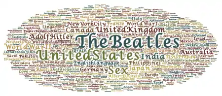 Більш загально, то ж саме візуальне уявлення може бути використано для відображення об'єкт не тегів наприклад, хмара тегів або хмари даних.
