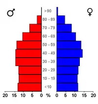 Частка осіб у віці понад 65 років дещо перевищує національні показники — 20,54 % проти 18,5 % відповідно.