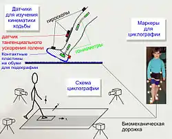 Важливу інформацію отримують при проведенні традиційного в біомеханіці циклографічного дослідження, яке, як відомо, засноване на реєстрації методом відео- кінофотозйомки координат маркерів, що світяться, розташованих на тілі випробуваного.