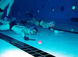 - Підводний хокей — різновид хокею, команди змагаються під водою в 4-6 метровому басейні розміром 15x25 метрів.