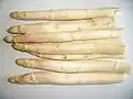 Спаржа відома в багатьох різновидах, серед яких основними є біла та зелена спаржа.[6] В їжу використовують молоді пагони стебла рослини. Найкращі сорти спаржі повинні мати товсті, не грубі і не довгі (15-16 см) пагони.[6]