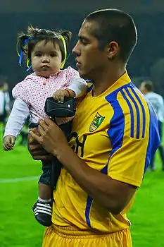 | Майдана с дочкою у формі «Металіста». 2009 рік | ||||||||||||||||||||||||||||||||||