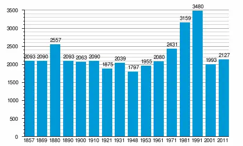 | 1971 | 2431 | 1104 (45,41%) | 1120 (46,07%) | 110 (4,52%) | 97 (3,99%) |