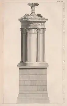 Хорегічний монумент Лісікрата добре зберігся донині. Він являє собою ротонду з коринфськими колонами, поєднаними закругленими мармуровими плитами, що відрізняються за відтінком матеріалу. Над колонами — фриз із сюжетом життя Діоніса: перетворенням піратів, які викрали бога, на дельфінів. Монумент шестиметрової висоти вінчає кам'яна квітка аканта, на якій стояла бронзова тринога — власне нагорода за перемогу в театральному змаганні.