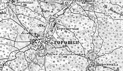 На момент, коли створювали Географічний словник Королівства Польського у ХІХ ст. містечко називалось Горошки, тому і згадане в цитаті під такою назвою.
