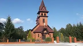 Пам'ятний знак на місці де в 1752-1919 рр. знаходилася уніатська (потім православна) церква, а в 1922-2001 дерев’яний парафіяльний католицький костел. Фото 2019 р.