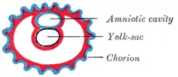 1) Хоріон — зовнішня ворсинчаста оболонка зародків плазунів, птахів і ссавців на початкових етапах їхнього розвитку. Тимчасовий орган зародка, за допомогою якого відбувається обмін речовин між зародком і навколишнім середовищем. Хоріон є похідним трофобласта — поверхневого шару клітин плодового міхура. Хоріон птахів і плазунів зливається з алантоїсом, утворюючи загальну хоріоалантоїдну оболонку, розташовану під підшкаралуповою яйцевою оболонкою. У плацентарних ссавців (в тому числі у людини) хоріон покритий ворсинками, в які вростають кровоносні судини зародка. Ворсинки хоріона занурюються в стінку матки, утворюючи плаценту.