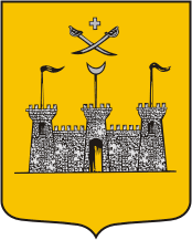 1826 року місту Хотину був наданий герб: в золотому полі срібна тривежева цитадель, супроводжена вгорі срібним рівнораменним хрестиком над двома схрещеними шаблями — символами захисту краю від ворогів. На передній вежі півмісяць на держаку, а на держаках обох крайніх веж — застромлені бунчуки.
