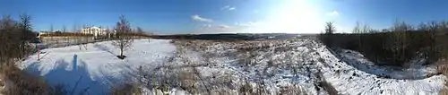 До 2013 року біля дороги з'явилася напівкругла двоповерхова будівля довжиною 75 м, а за нею — двоповерховий палац розміром 75×45 м. Північна частина городища та її східний схил були вкриті терасами з парками та газонами і обнесені металевим парканом з колючим дротом. Загальна площа цієї території з прилеглою дорогою — близько 9 га. В її межах опинилися місця всіх зроблених на той час розкопок, окрім шурфів (див. карту), як і деякі нерозкопані об'єкти[5]. Ця частина городища була однією з найбагатших залишками давніх споруд і мала найвищу ділянку оборонного валу[13]. Всі тамтешні укріплення, крім крайнього північного фрагмента, були знищені.