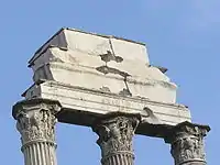 Сходи, що вели до храму республіканських часів, утворювали ростри з маленькими сходами, що спускаються вниз з обох кінців платформи, витягнутої вздовж фасаду храму на середині висоти сходів.